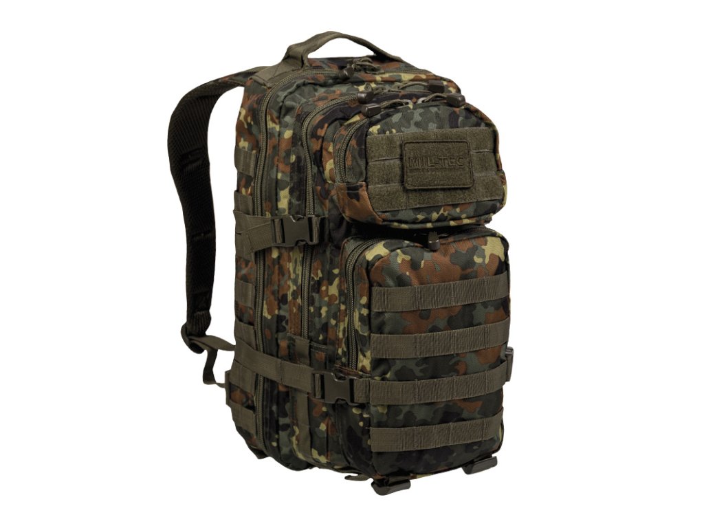 Batoh assault je odolný proti vodě, všechny prostory jsou uzavřeny robustním 2-pásmovým zipem, ergonomicky tvarované ramenní popruhy jsou polstrované a nastavitelné. Polstrovaná záda s nastavitelným popruhem kolem pasu. Díky řadě bočních kompresních popruhů dává možnost připojit další zařízení prostřednictvím nylonových popruhů MOLLE a D-kroužků. Army batoh má ohromady čtyři oddělení (dvě velká, jedno střední, jedno malé), uvnitř množství kapes, síťkových i na zipy na každém oddělení dvojitý zip pro rychlý přístup, uvnitř pogumovaný, nastavitelný bederní pás (nepolstrovaný), záda a popruhy na ramena polstrované, ramenní popruhy nastavitelné (široké 5cm), kompresní popruhy po stranách batohu, držák pro přenášení. Velikost: 42 x 25 x 20 cm, objem cca 20 l, materiál: 100% nylon.