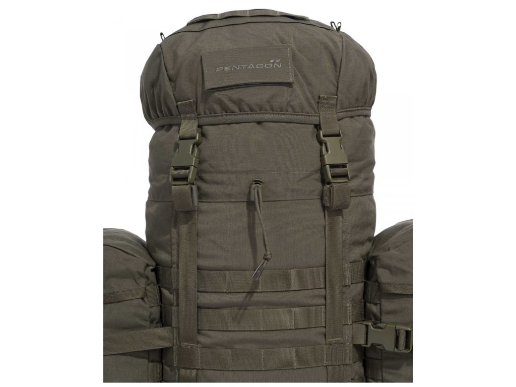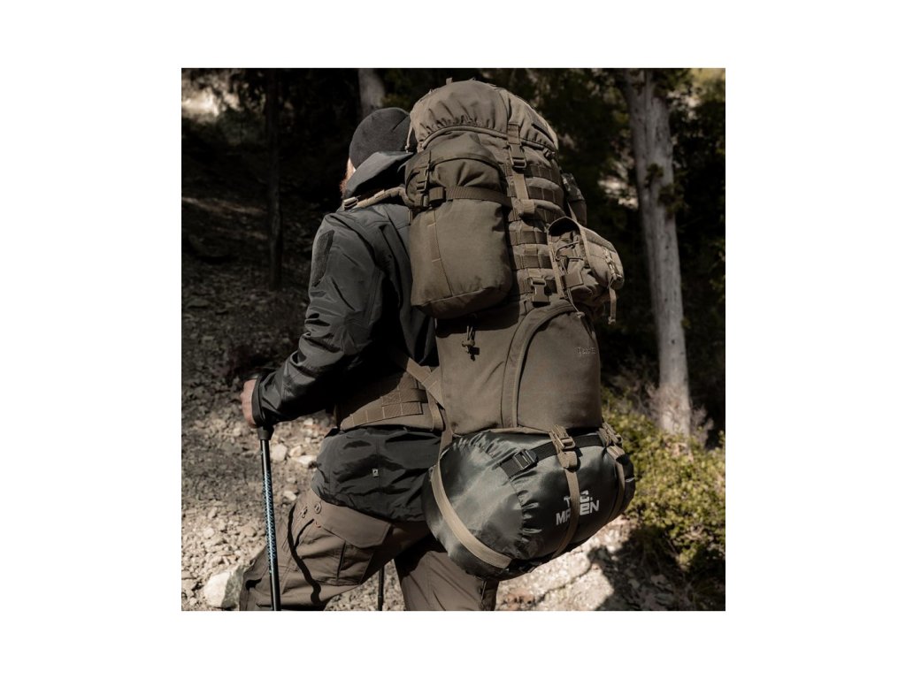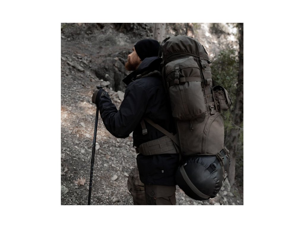 - taktický design: Rozložení MOLLE/PALS na víku, bocích a pase pro připevnění dalšího vybavení a poutka pro upevnění elastických šňůr a dalšího příslušenství