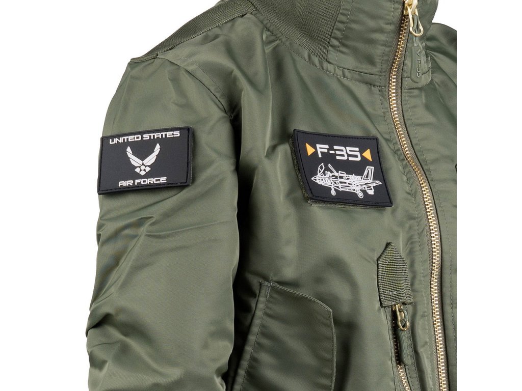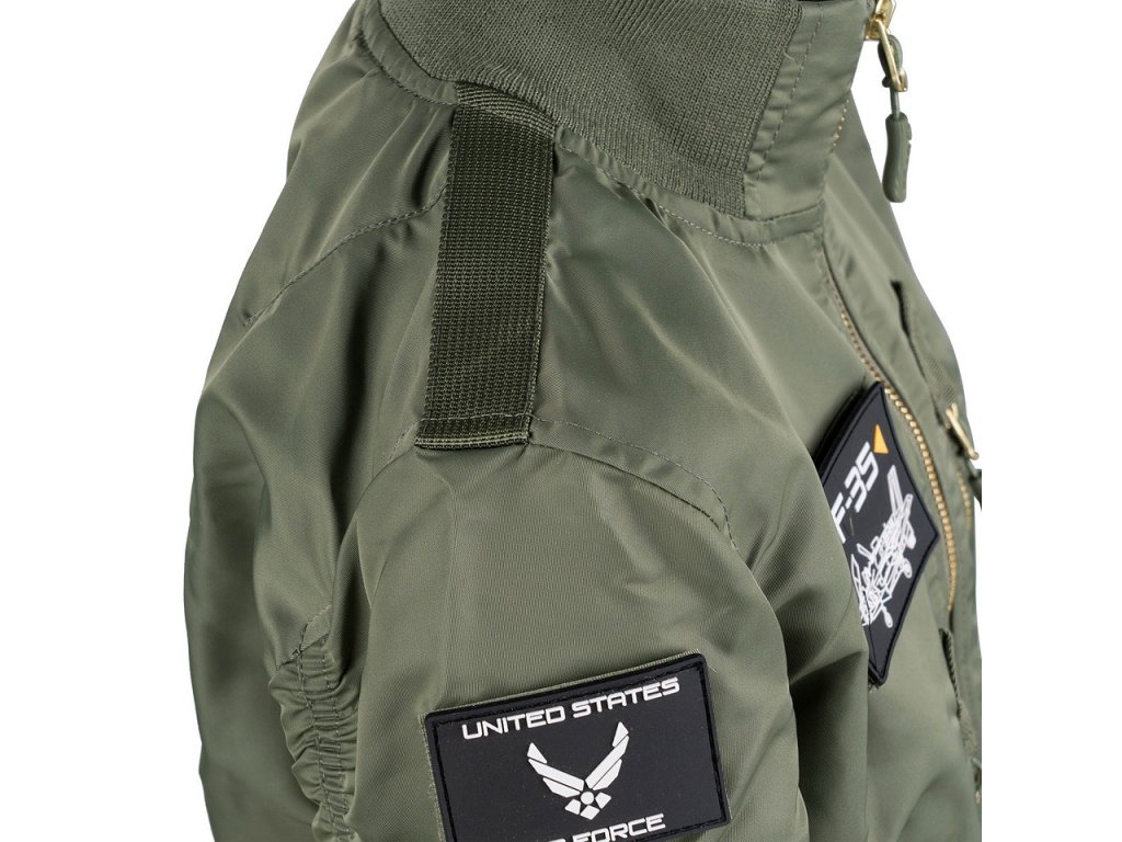 Tato stylová bunda je inspirována klasickými leteckými bundami amerického letectva a má tři unikátní nášivky odkazující na ikonický F-35 a americké letectvo.