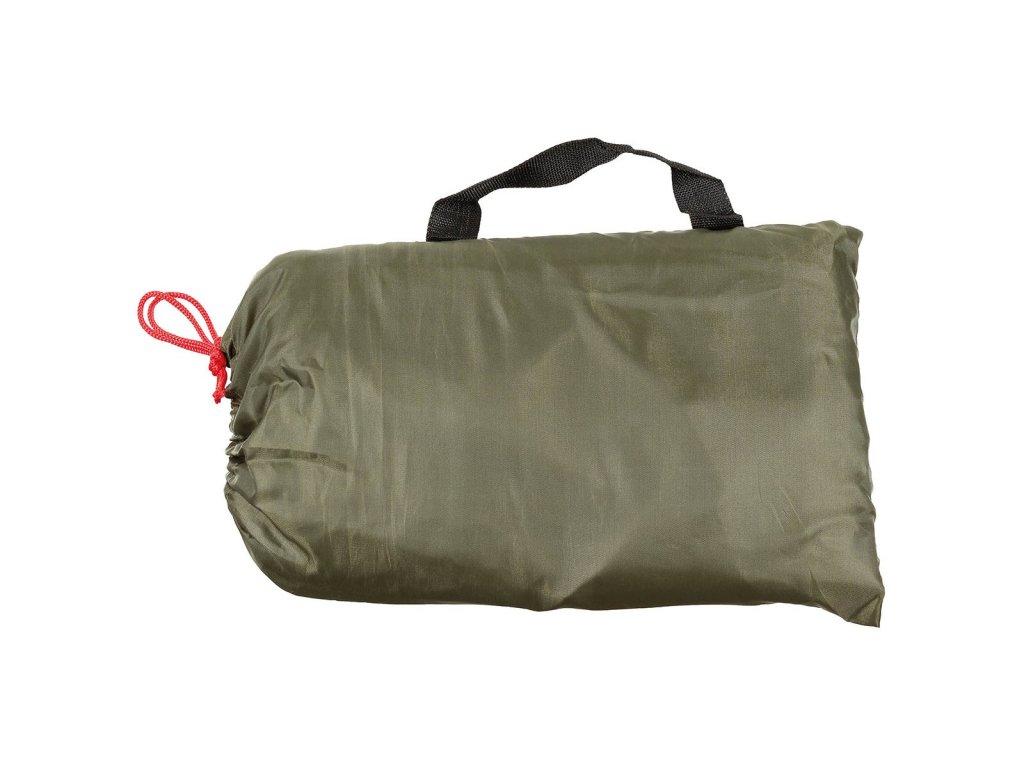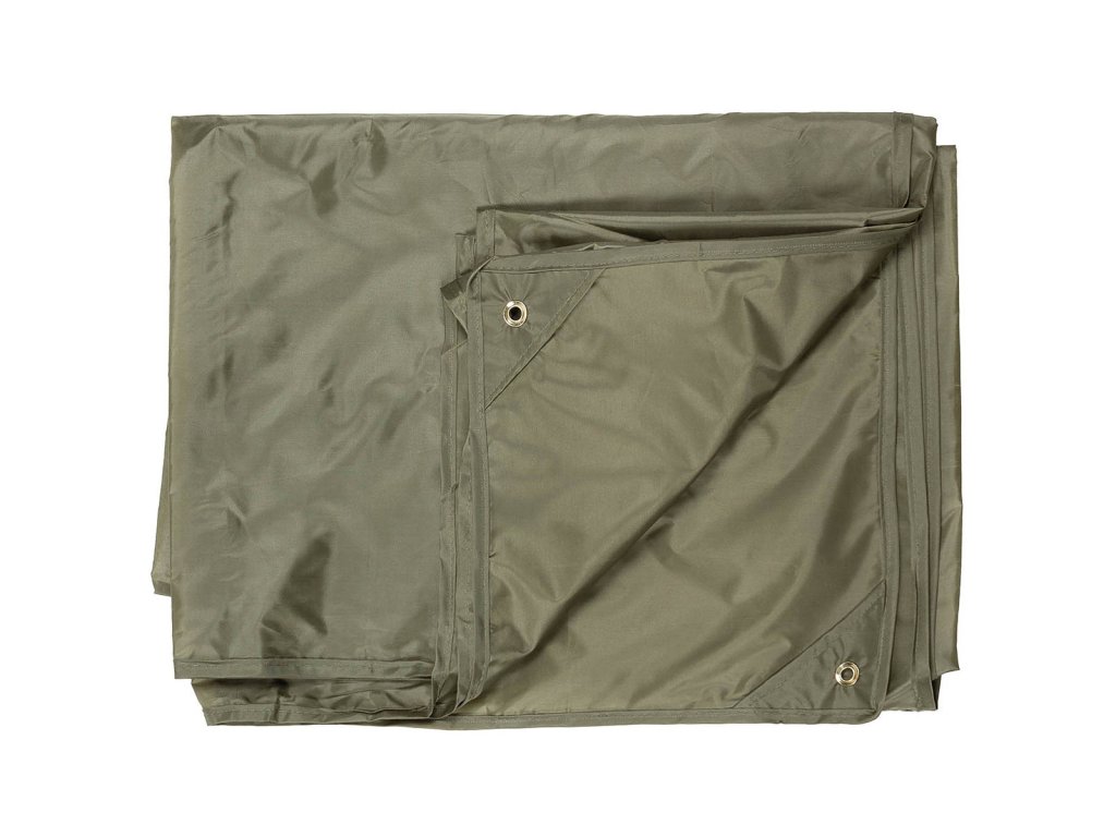nepromokavá celta, barva olive, velikost 500x600 cm, materiál: 100% polyester 190T PU, vodotěsný obal, lehká-hmotnost cca 2700g, kovová oka v rozích a po stranách celty (16 ok), velikost v zabaleném stavu cca 40 x 20 x 5 cm