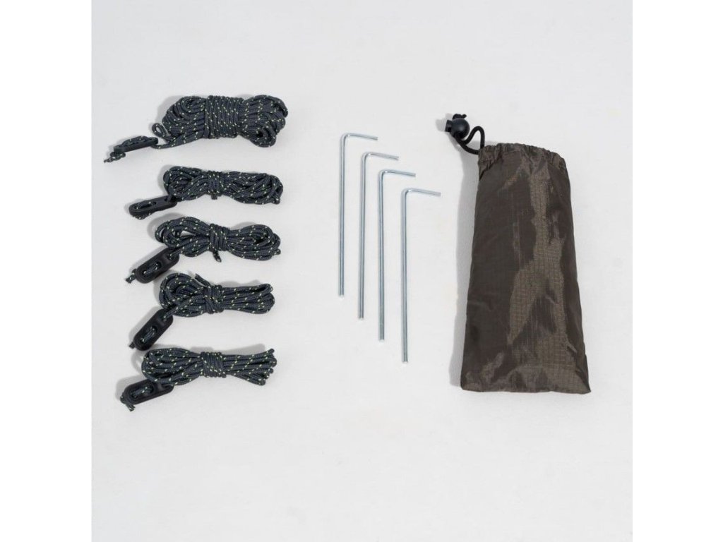 - obsahuje 4 ocelové kolíky a 4 nastavitelné šňůry pro rychlé nastavení