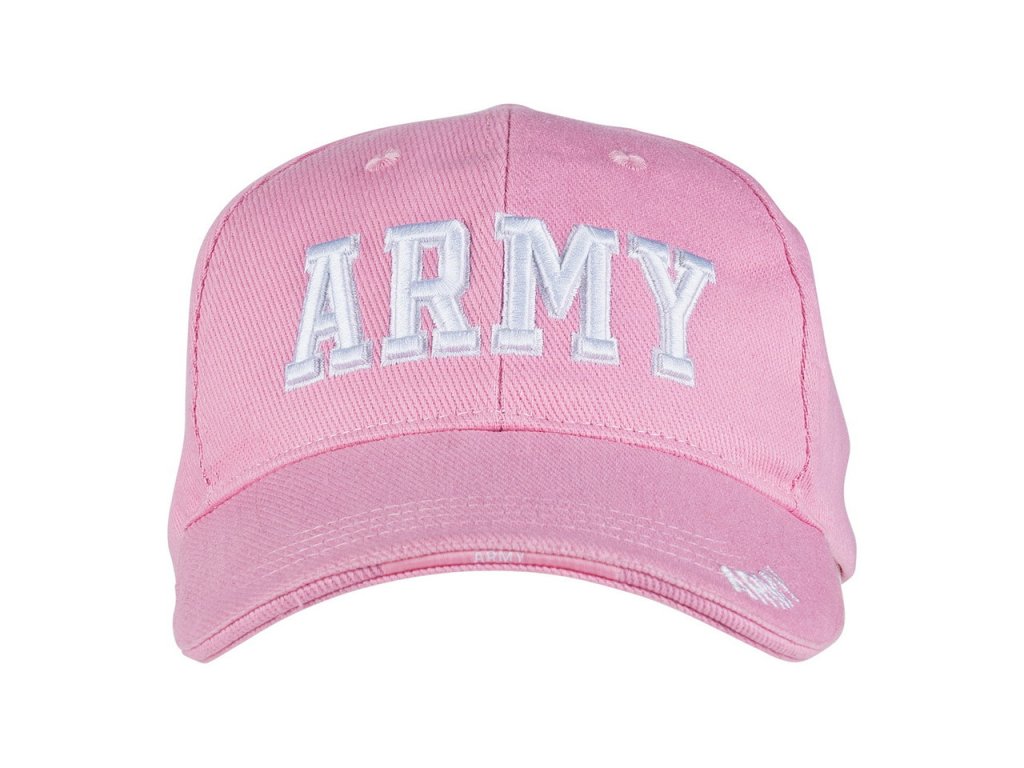 Stylová růžová baseballová čepice pro holky s bílým nápisem ARMY na přední straně.