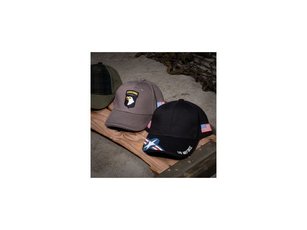 Kšiltovka má na přední straně logo AIRBORNE a na boku vlajku USA. Baseballové čepice milují nejen mladí lidé – jsou vhodné pro všechny věkové skupiny. Robustní bavlněná čepice s kšiltem se často kupuje jako sběratelský kousek. Baseballová čepice je vyrobena ze 100% bavlny.