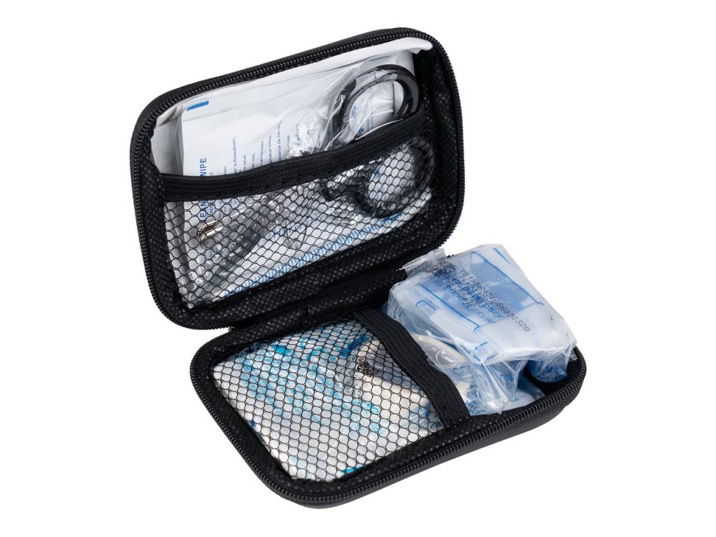 Kompaktní lékárnička balená v pevném kufříku z EVA. Sada obsahuje 28 základních pomůcek pro ošetření drobných zranění, čištění ran a provádění jednoduchých postupů první pomoci.