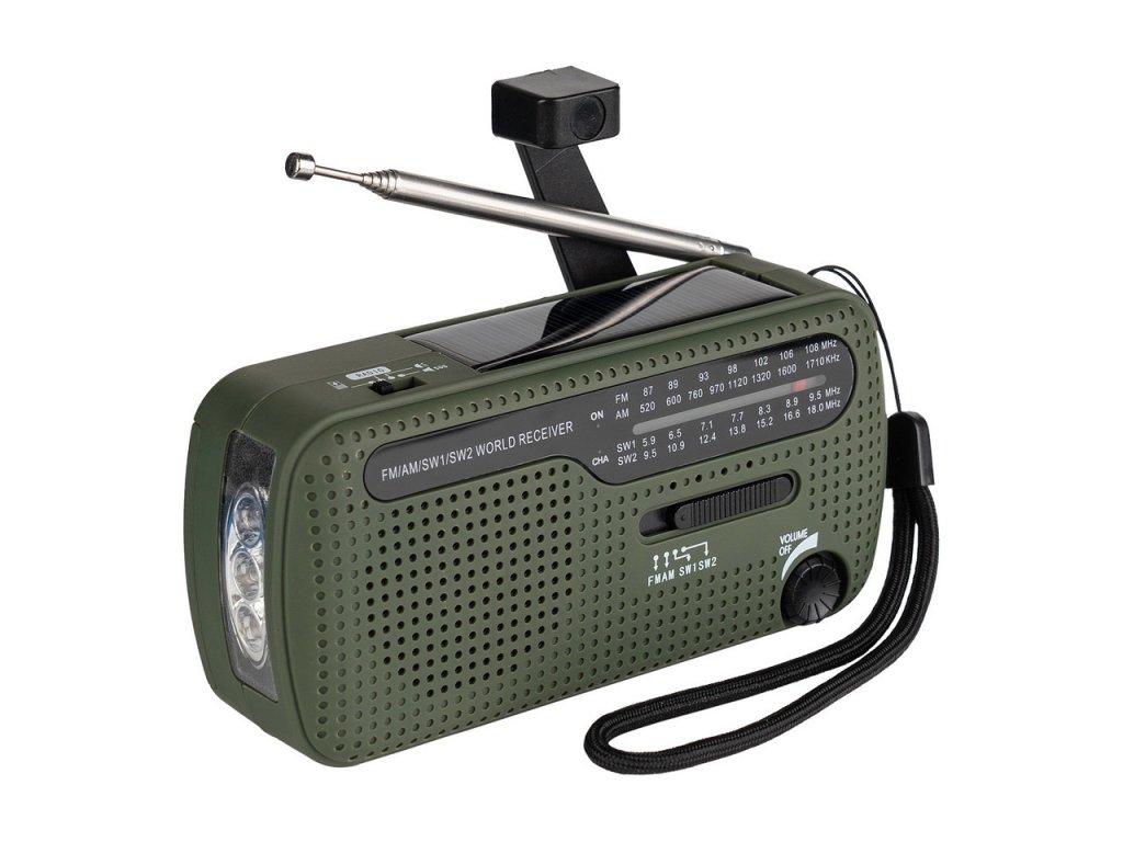 Fosco Survival Radio je multifunkční nouzová radiostanice, ideální pro přežití, venkovní použití a nouzové situace. Díky více frekvenčním pásmům (FM/AM/SW1/SW2) budete informováni o zprávách, počasí a upozorněních, ať jste kdekoli. Toto rádio lze napájet solární energií, ručním dynamem nebo bateriemi. Vždy budete mít přístup k napájení, i když v blízkosti není zásuvka. Vestavěná LED svítilna poskytuje osvětlení ve tmě.
