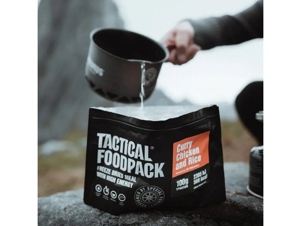 Krémové kari s mírnou pálivostí. Pokud chcete pikantnější pokrm, přidejte o něco méně vody. 100% přírodní, bez konzervantů a přísad. Tactical Foodpack je nejlepší lyofilizované jídlo pro kempování, turistiku a outdoorové dobrodružství. Energetická hodnota na porci je 500 kcal.