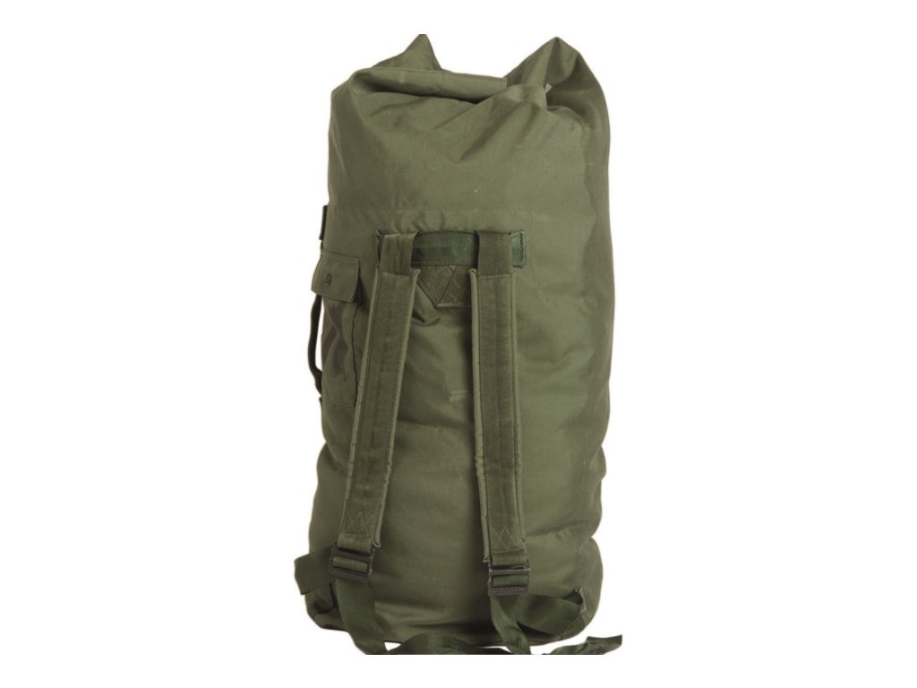 originální lodní pytel US, olivový lodní vak US, kapsa na doklady, popruhy na záda, popruh na nošení v ruce, cca 100 l, materiál: nylon, velikost 94x40 cm, použitý - může být spravovaný