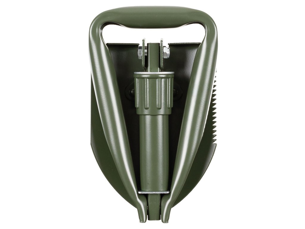 kompaktní skládací lopatka US, robusní ocel, možno použít i jako motyku, čepel s jednostrannou pilou, skládací, nylonový obal s poutkem na opasek, velikost listu 15,5 x 11 cm, rozměry: složená 18x13 cm, délka v rozloženém stavu cca 47 cm, hmotnost cca 650g, army shop