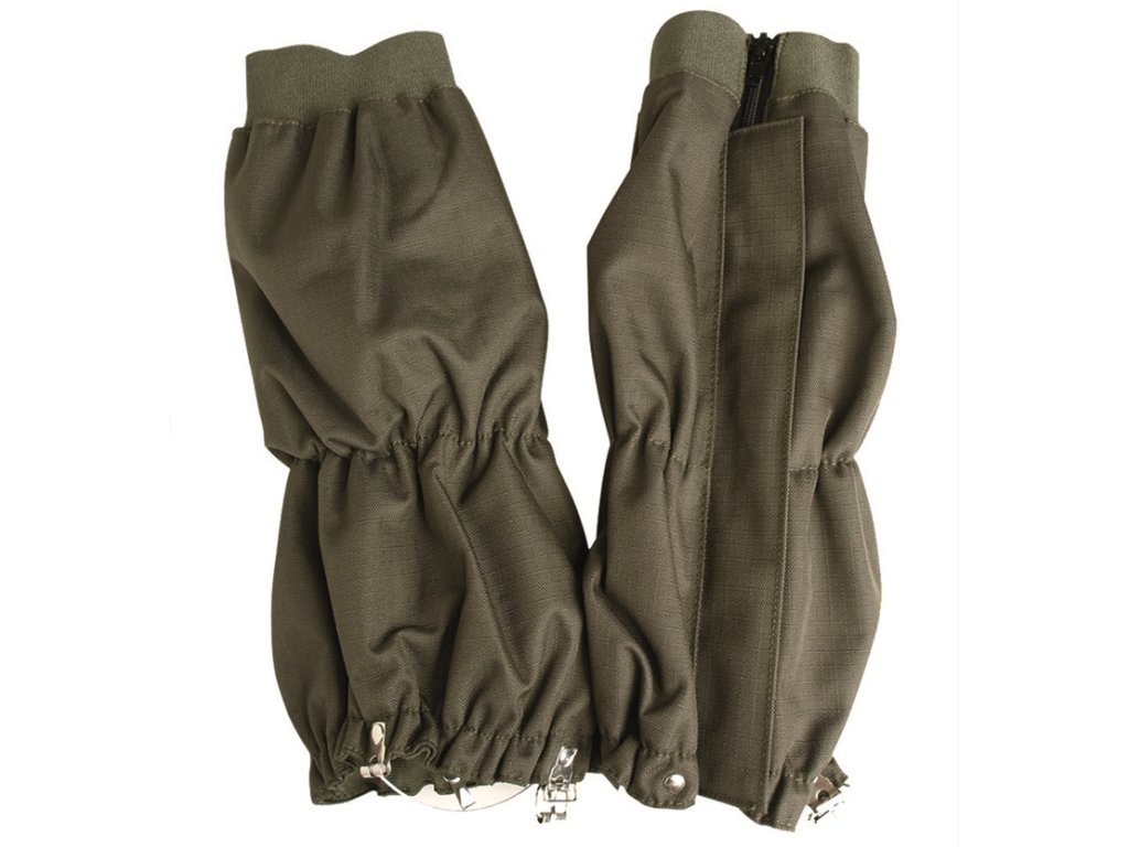 nepromokavé návleky na nohy, univerzální velikost, upevnění pod nohu pomocí ocelového lanka, zapínání na zip, skrytý zip s páskem na suchý zip, kovový háček pro upevnění na botu, materiál 100% polyester, podšívka 100% polyvinylchlorid, barva oliv