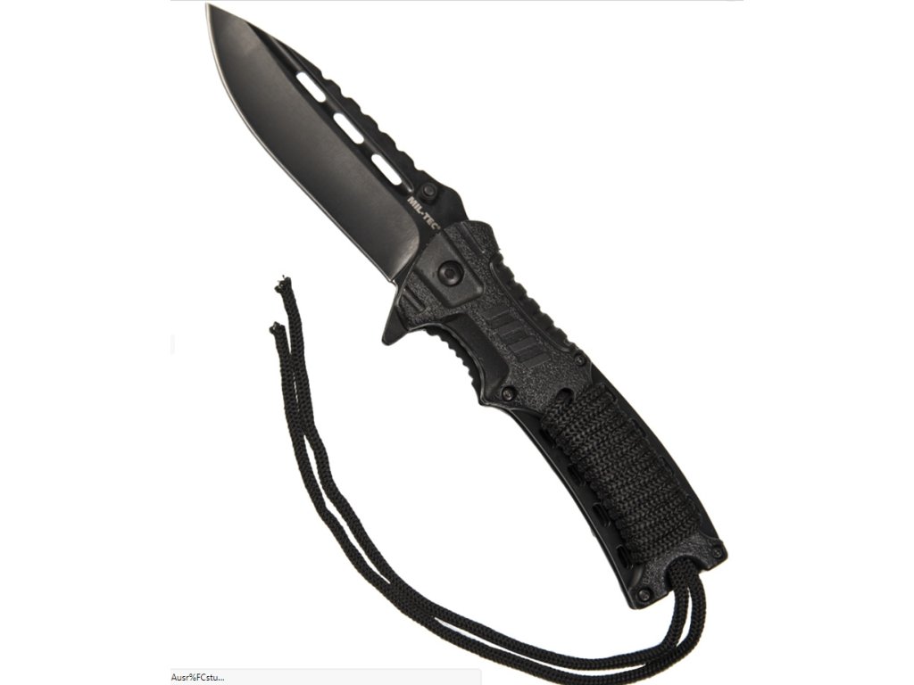 nůž paracord s integrovaným křesadlem a píšťalkou, nerezová ocel 3CR13, rukojeť ABS plast, paracord 100% nylon, délka čepele 10 cm, celková délka 21,5 cm, pojistka, spona na opasek, černý