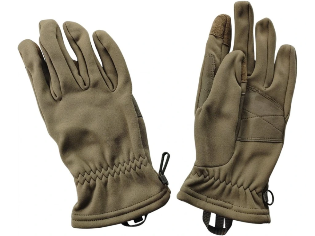 Pohodlné zimní vojenské rukavice ze softshellového materiálu. Svrchní vrstvu rukavic tvoří polyesterová tkanina, která nabízí optimální pružnost. Použitý materiál zajišťuje vysokou úroveň odolnosti a pohodlí při nošení. Podšívka rukavic je vyrobena z příjemného a téměř ihned hřejivého fleecu. Palec a ukazovák je opatřen povrchem kompatibilním s dotykovými displeji. V zápěstí rukavic najdete pruženku, která zabraňuje vnikání nečistot do rukavic. K rukavicím je dodávána malá karabinka sloužící k sepnutí rukavic.