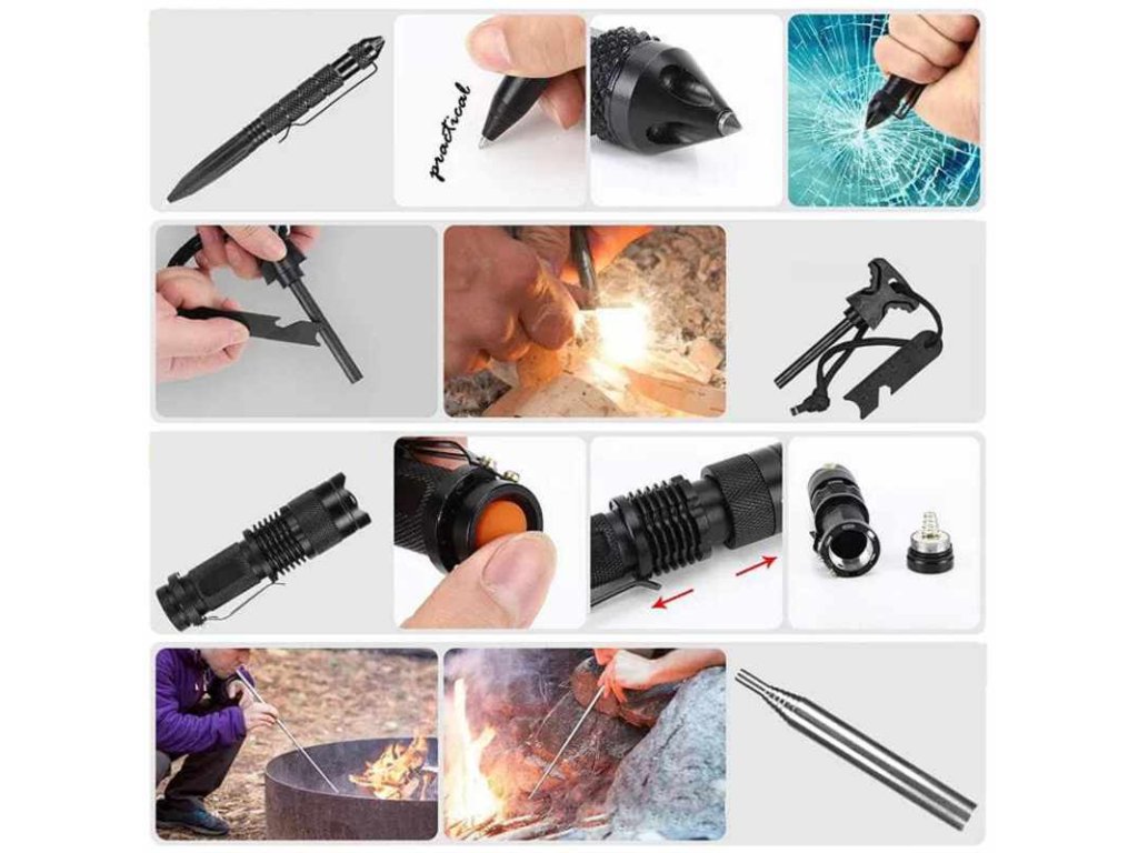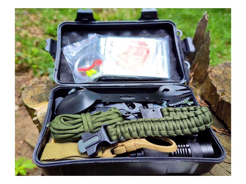 Praktická sada pro přežití se vším potřebným v případě ztracení se v divočině - velká KPZ. Krabička obsahuje 18 nástrojů s velkým množstvím funkcí, mezi nimiž najdete nezbytné pomůcky jako křesadlo, kapesní nů či multifunkční nářadí, ale překvapí vás i různé speciální doplňky jako např.: termodeka, vlasec na ryby s háčkem a návnadou nebo i přenosný rozfoukávač ohně. Nesmějí chybět ani skutečně klíčové pomůcky jako kompas či poplašná píšťalka v případě spatření záchranné jednotky. Celá krabička poslední záchrany má přitom jen minimální rozměry: 20 x 7 x 12 cm (D x V x Š), takže si své místo najde skutečně leckde. Univerzální využití a elegantní design tak z této KPZ-tky vytváří praktický dárek pro muže, který zvykne stanovat v lese nebo přežívat v nehostinných podmínkách.