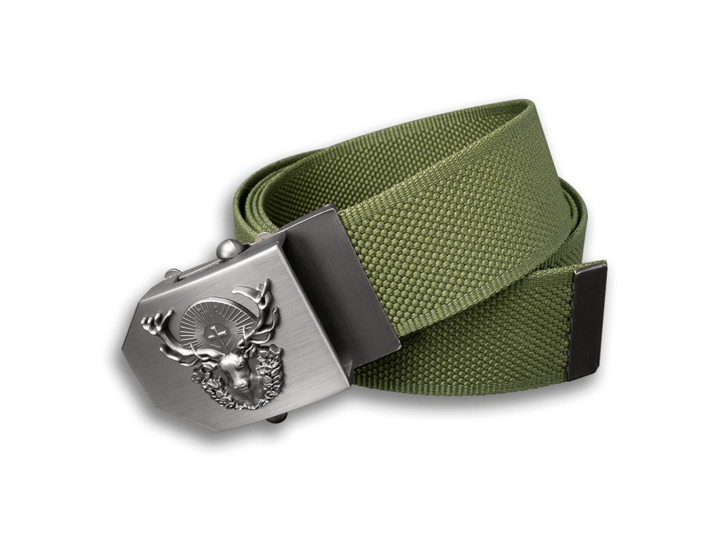 Nová, masivní kovová přezka s ostře řezanými rysy obsahuje 3D motiv jelena.