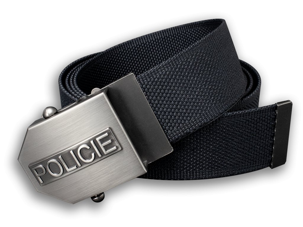 Nová, masivní kovová přezka s ostře řezanými rysy obsahuje 3D nápis POLICIE. Přezku lze použít jako otvírák na pivo. Atraktivní vzhled podtrhuje luxusní povrchová úprava starostříbro. Zubový mechanismus přezky umožňuje velmi snadné zkrácení textilního popruhu podle potřeby zákazníka. Jedna univerzální délka popruhu 150 cm uspokojí všechny zákazníky. Šířka popruhu je 4 cm.