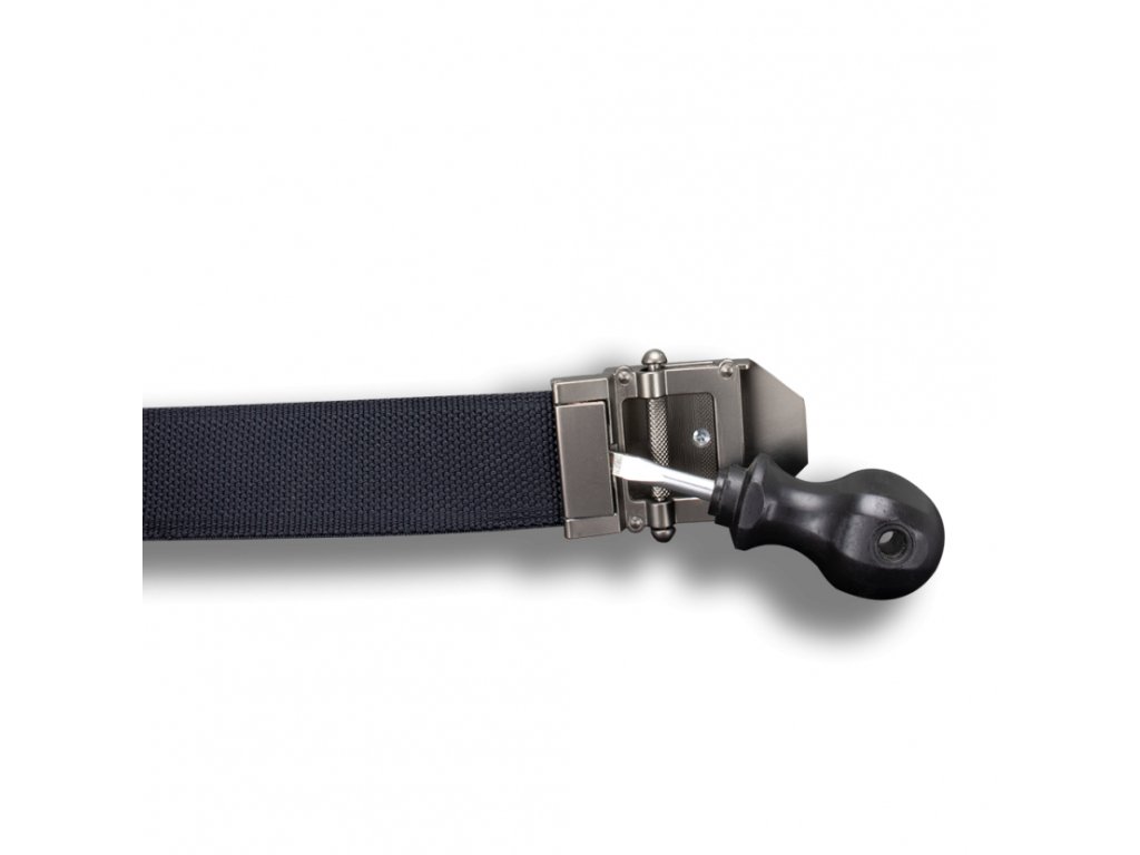 Zubový mechanismus přezky umožňuje velmi snadné zkrácení textilního popruhu podle potřeby. Jedna univerzální délka popruhu 150 cm uspokojí všechny zákazníky.