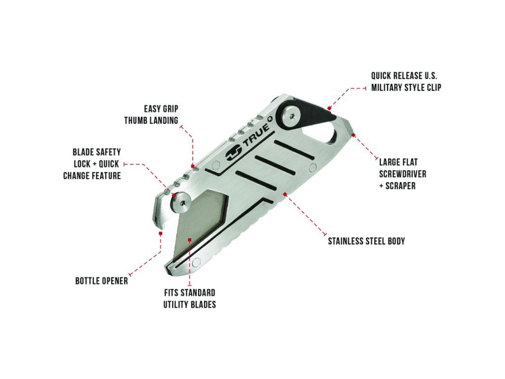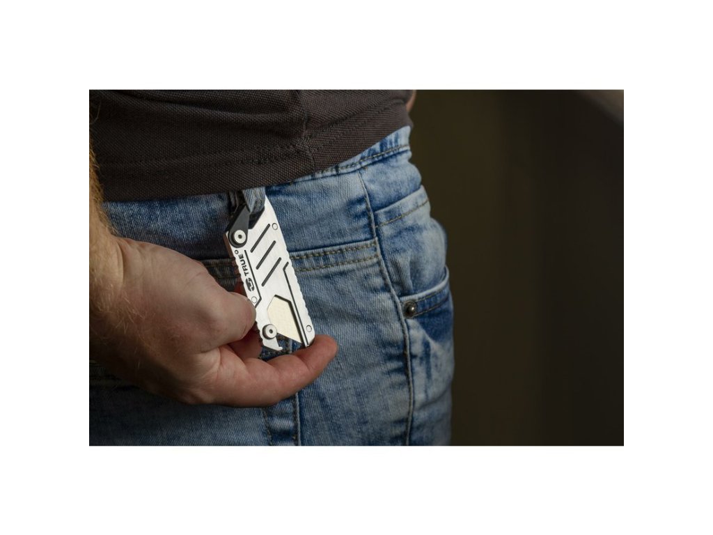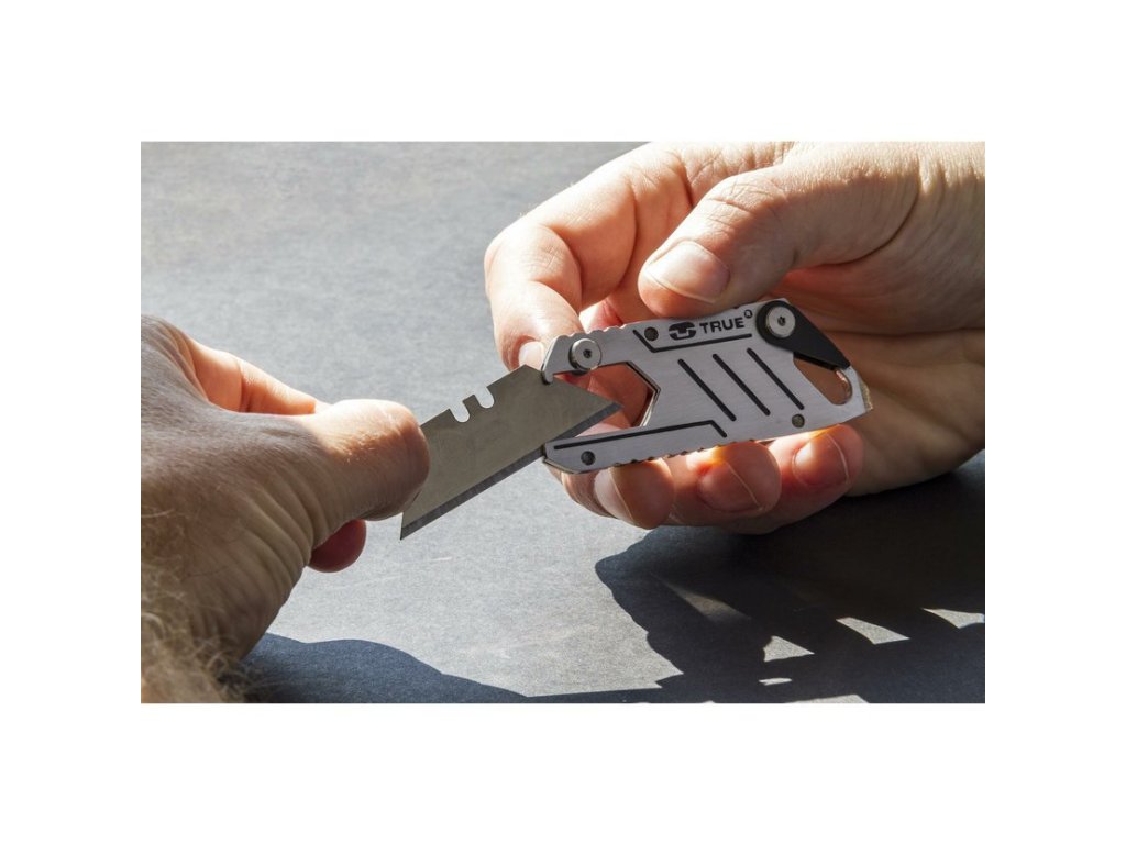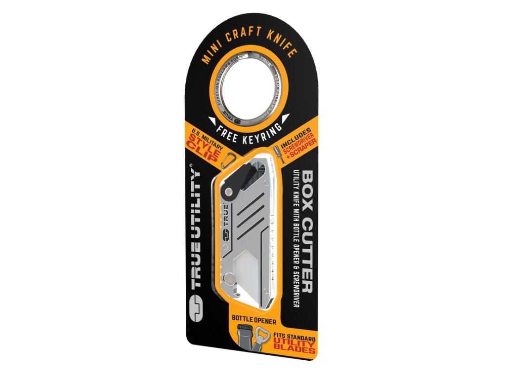 Nenechte se zmást jednoduchým designem, protože tento mini řemeslný nů s rychlou výměnou čepele má skryté vlastnosti, jako je otvírák na lahve, plochý šroubovák a škrabka.