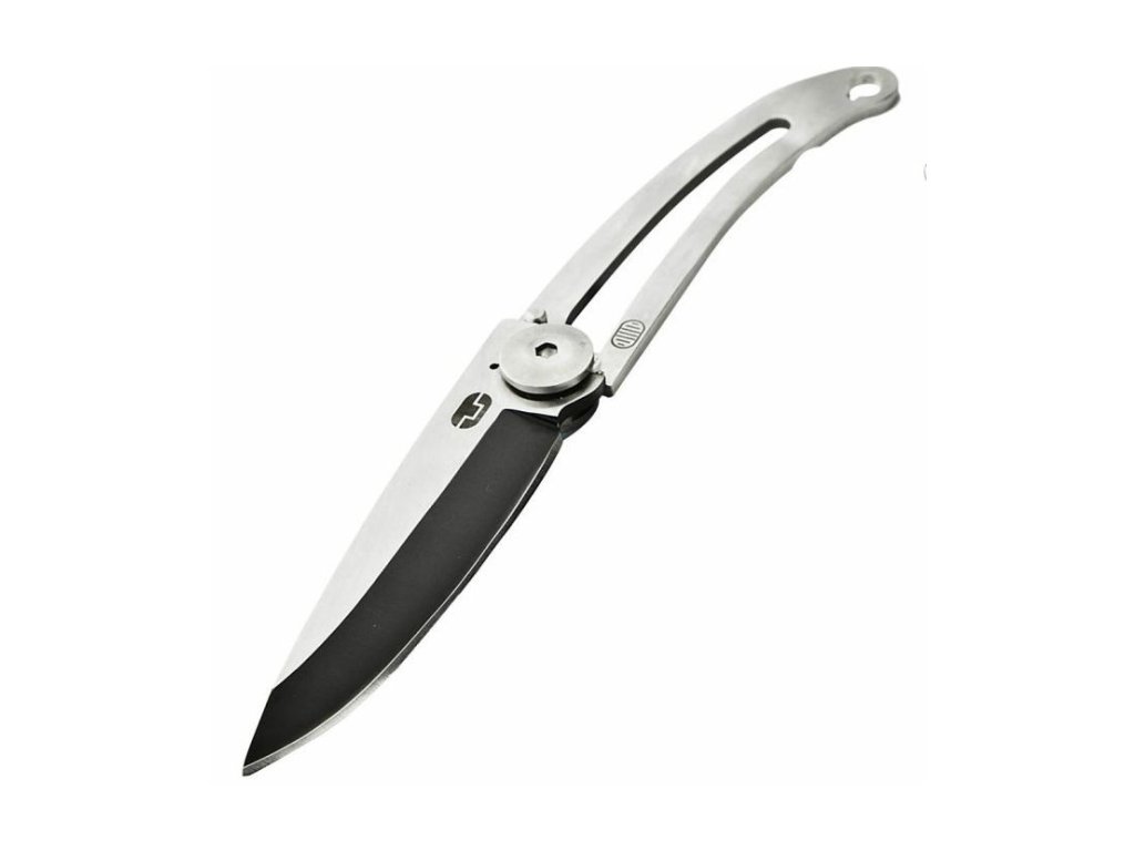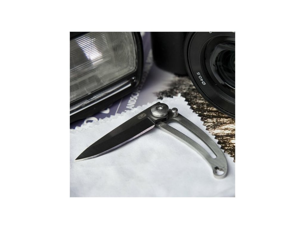 Mini nů, který dáte opravdu všude. Má černě potaženou titanovou čepel. Zámek nože je zajištěn pomocí pinu.